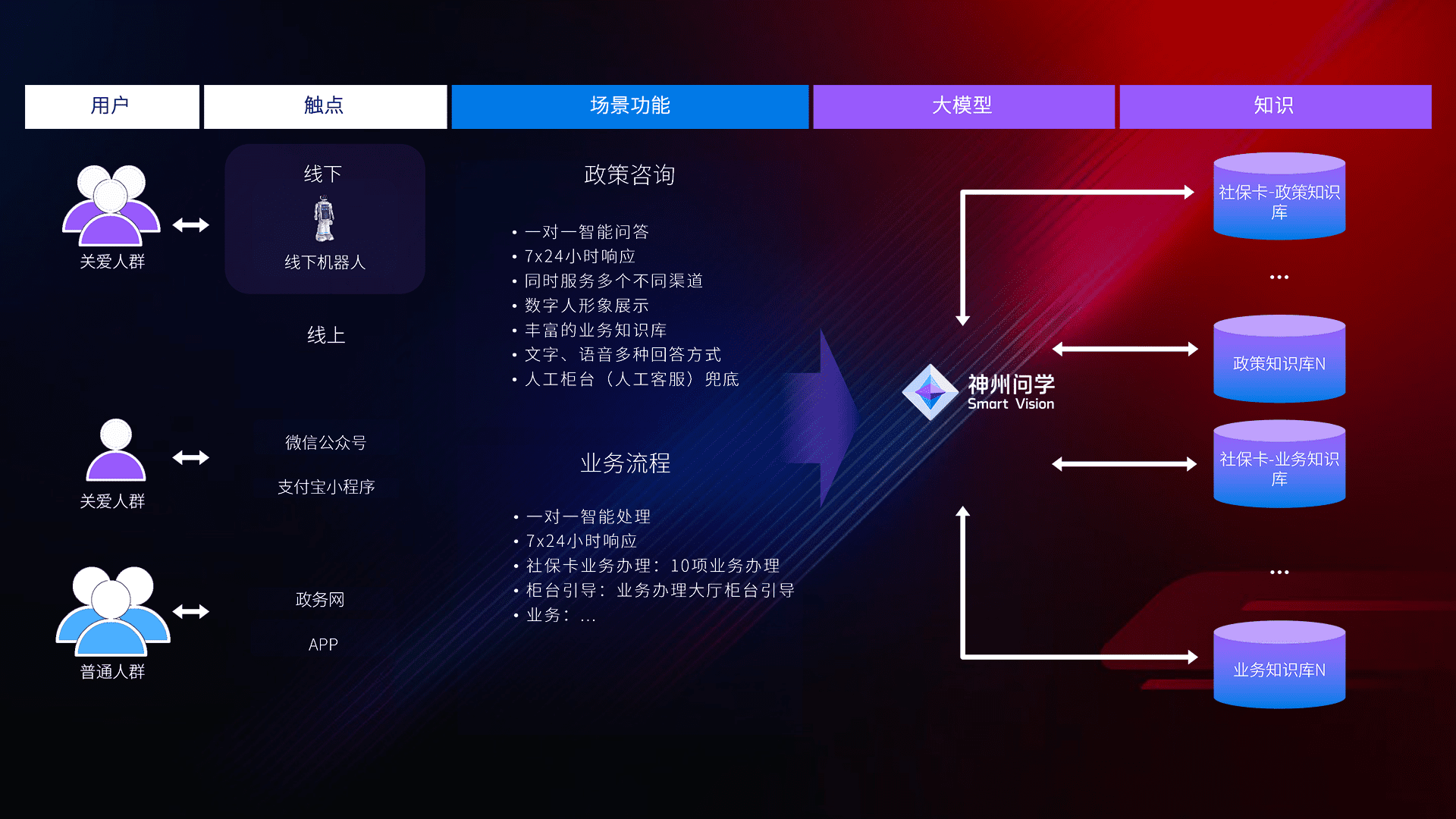 • 线上线下全覆盖:线上提供微信公众号、、支付宝小程序、、政务网、、app多种渠道,,,与线下机器人形成完整服务体系。。